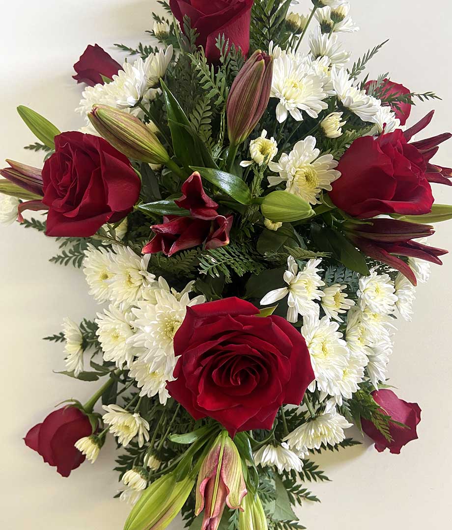 Inicio Condolencias Condolencia rosas y lilium rojos