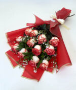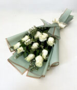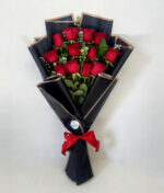 - Ramo de 12 rosas ecuatorianas, envueltas en papel decorativo y cinta de raso
