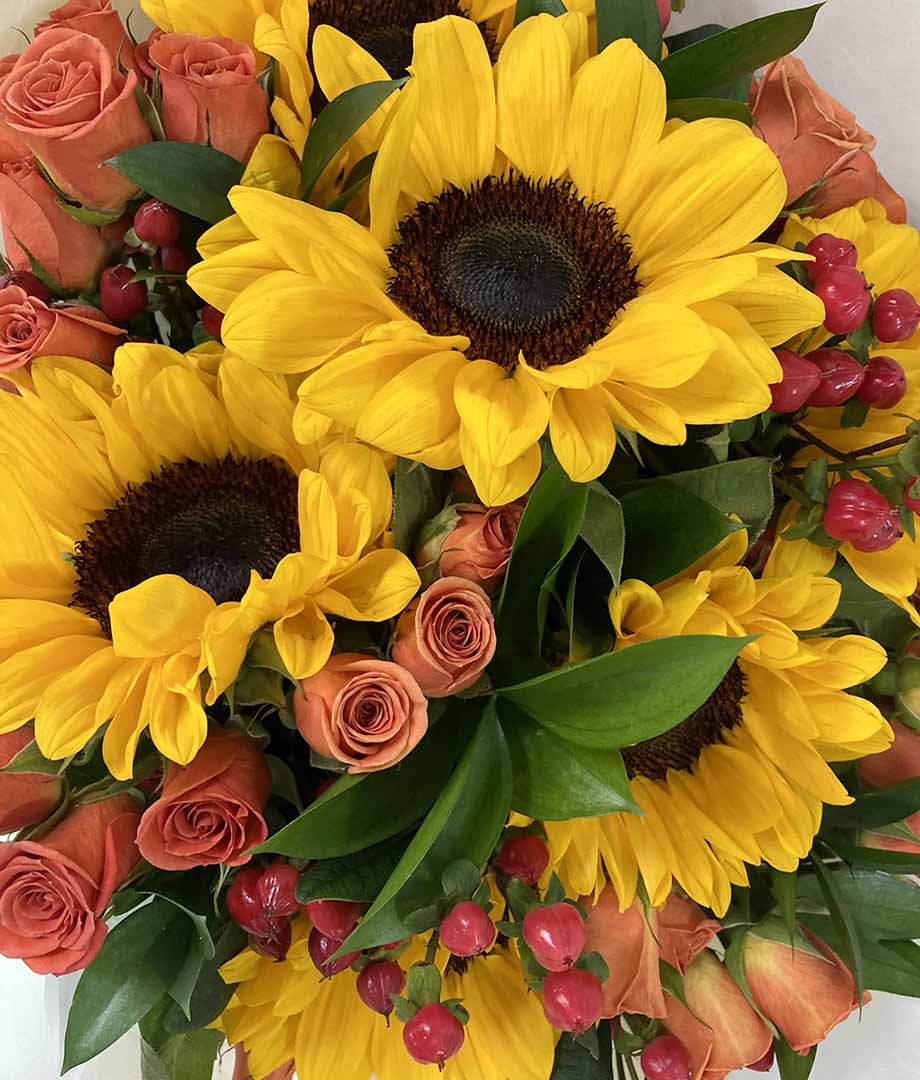 Ramo Begoña. Girasoles y minirosas