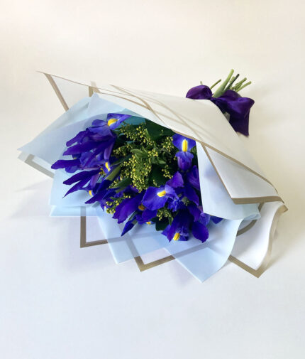 - Moderno ramo que combina 10 rosas ecuatorianas azules con delicados toques de gypsophilia, creando un contraste sutil y sofisticado. Presentado en papel decorativo y malla de yute, terminado con un rosetón de rafia, este ramo transmite frescura, estilo y originalidad